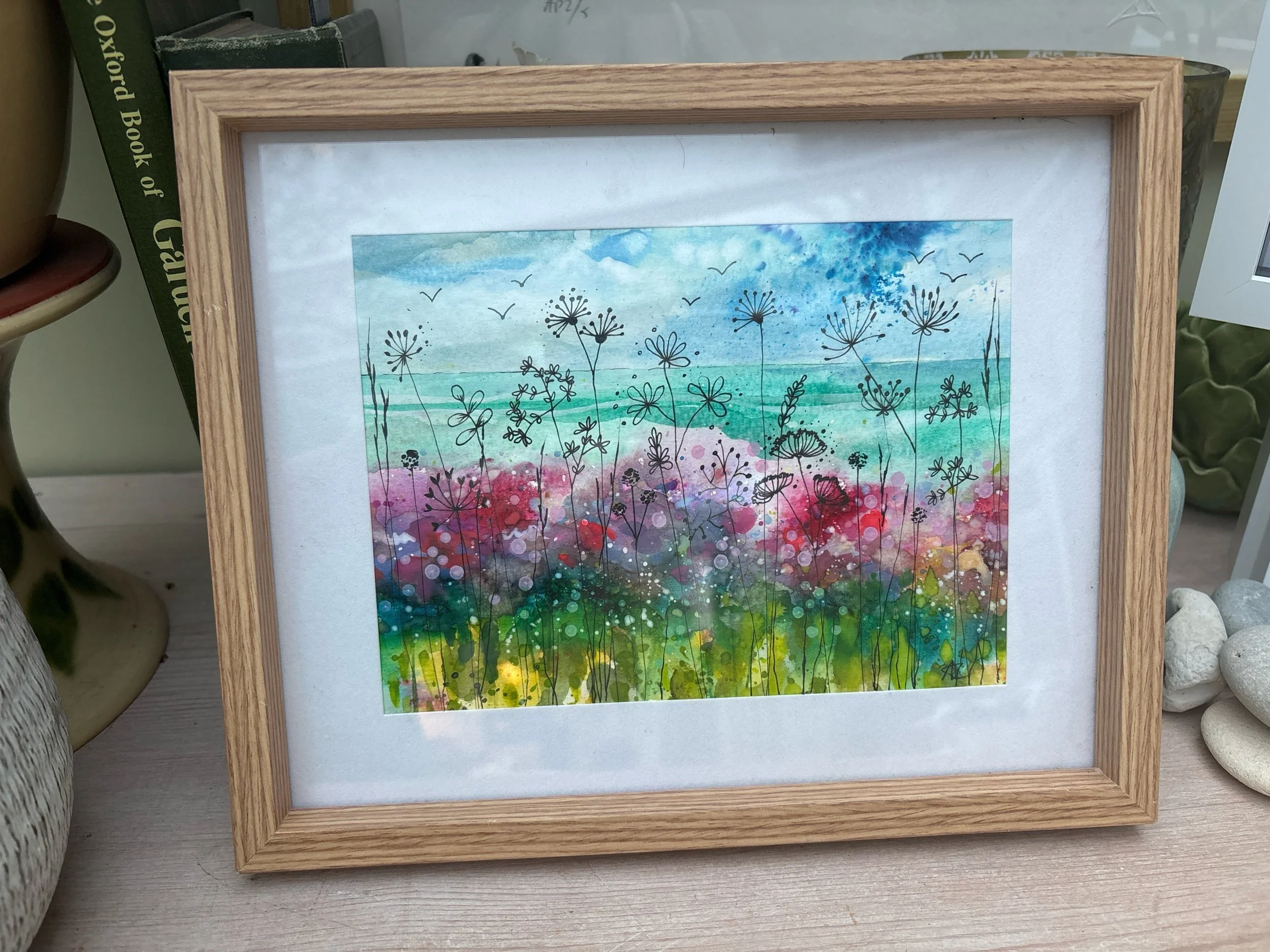 My artworks are inspired by the jumbly hedges of Devon in early spring when we usually visit, the colours of the sea, birds by the seashore and sunrise and sunsets! I love it all and hope you can find an affordable piece of art for your wall!