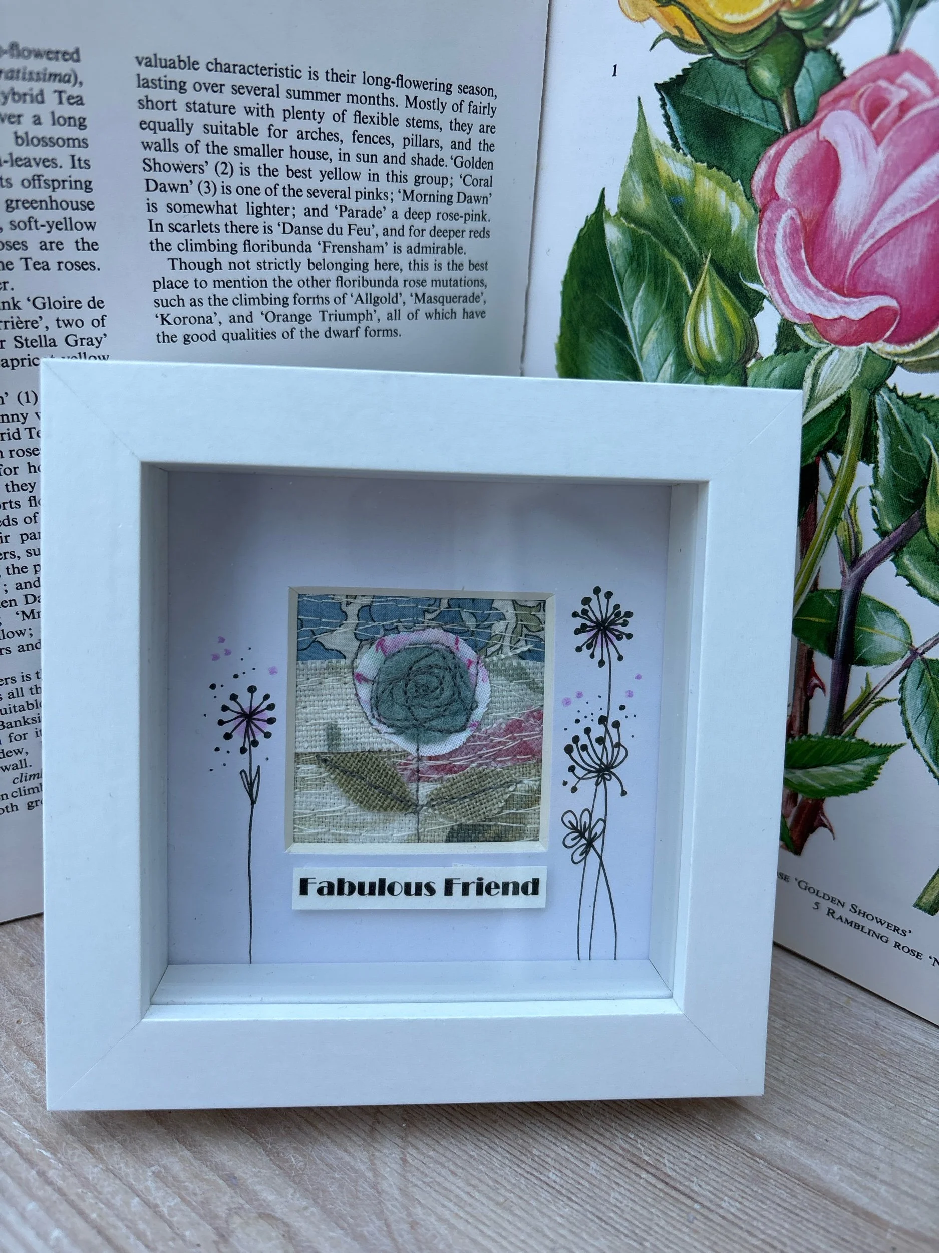 This little gift artwork was created using Freestyle Machine Embroidery and finished with line drawing!